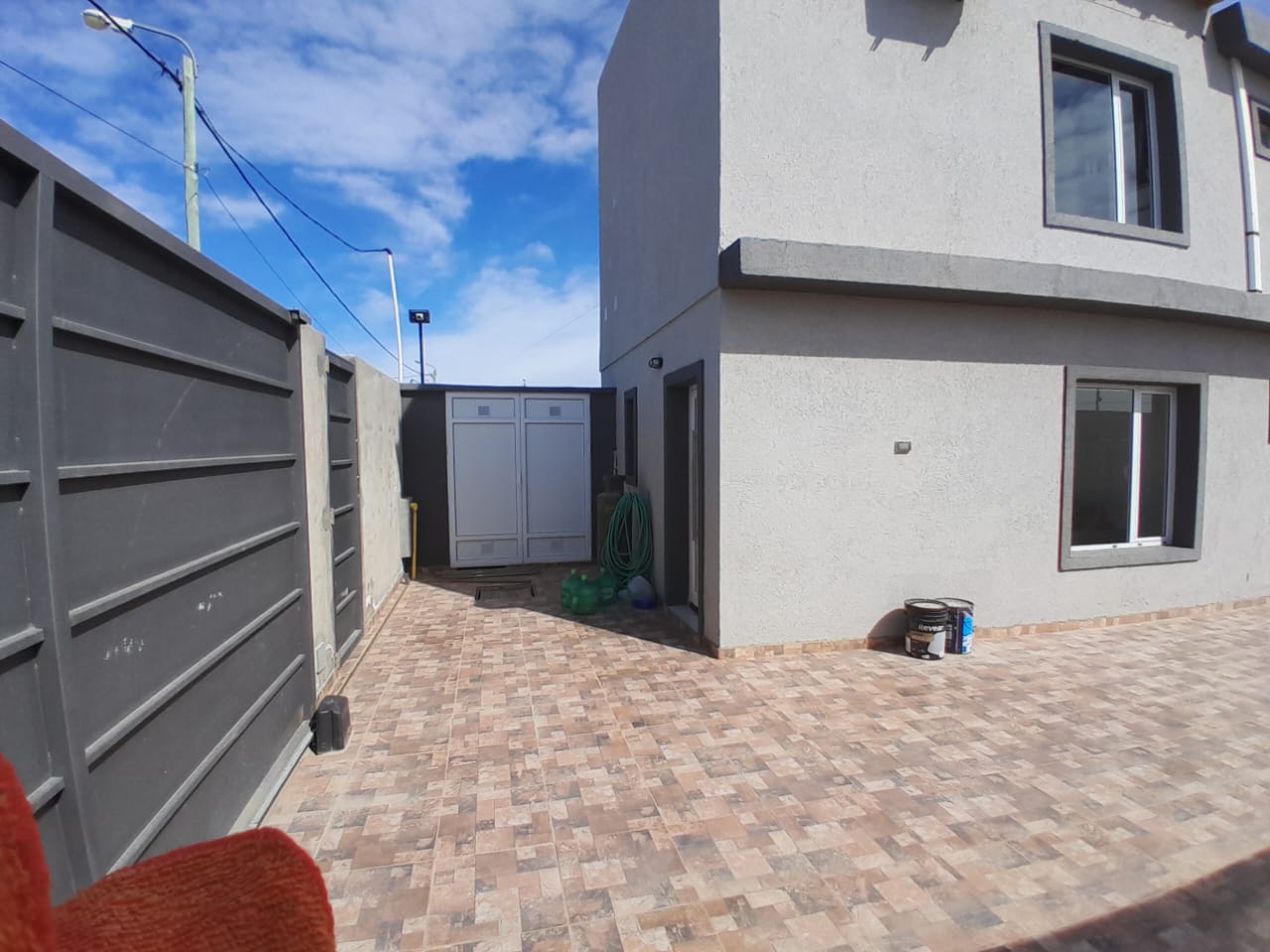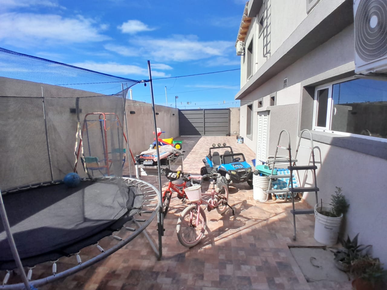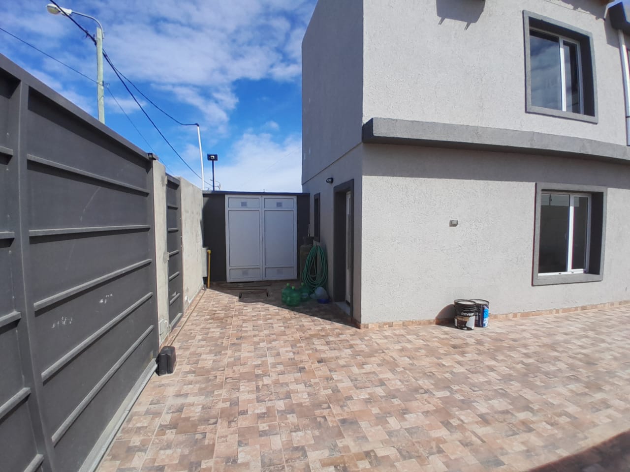 Entrada para vehículos con portón corredizo.