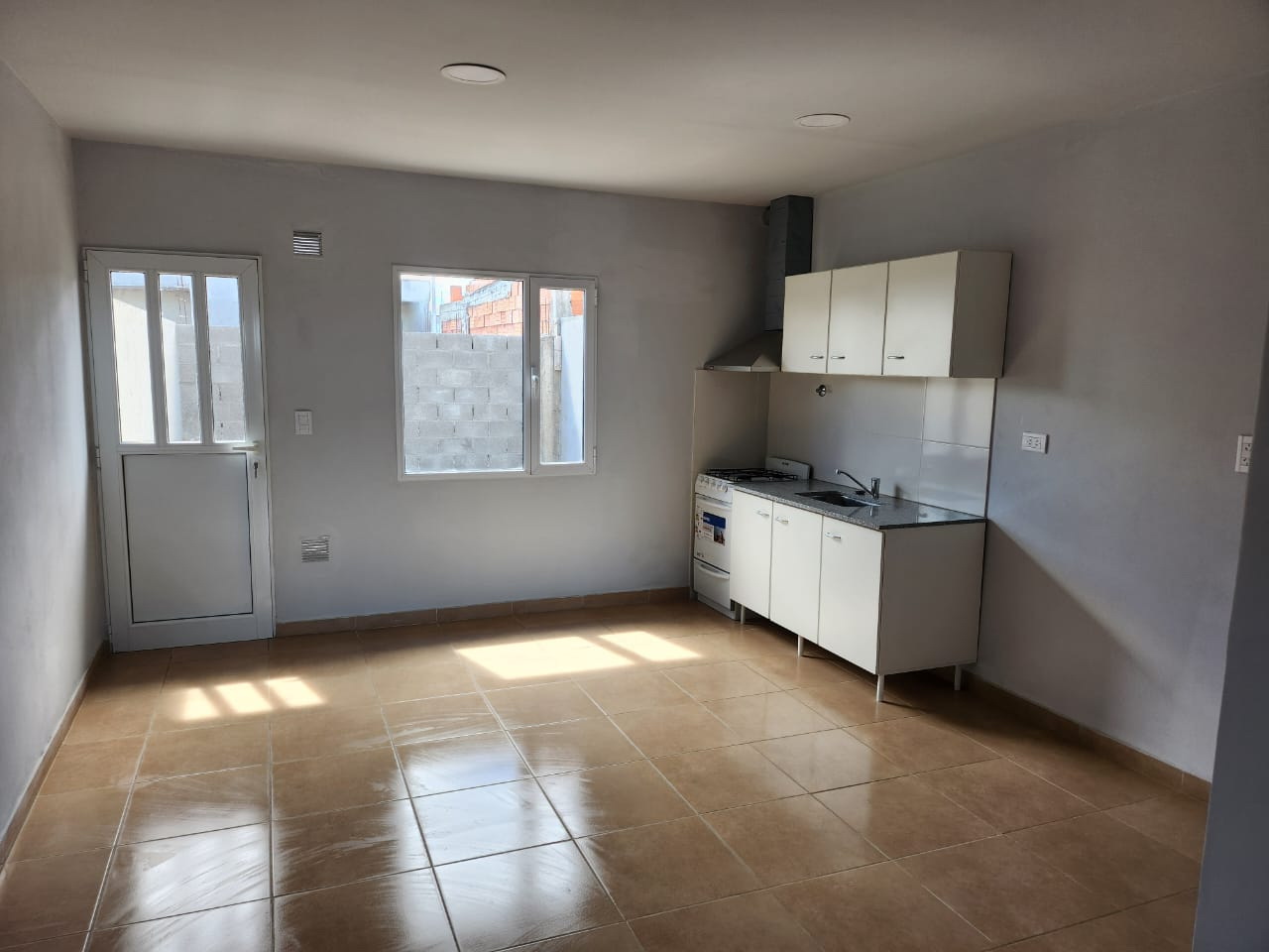 Living-comedor, cocina, baño de servicio, patio.